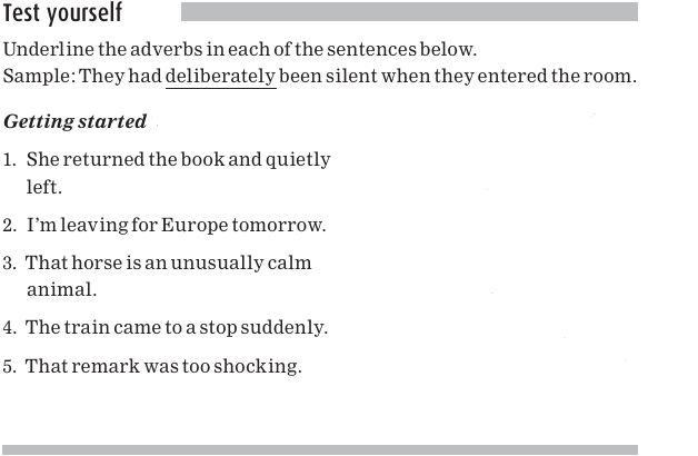 The adverbs are underlined in the sentences below: