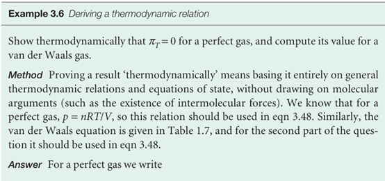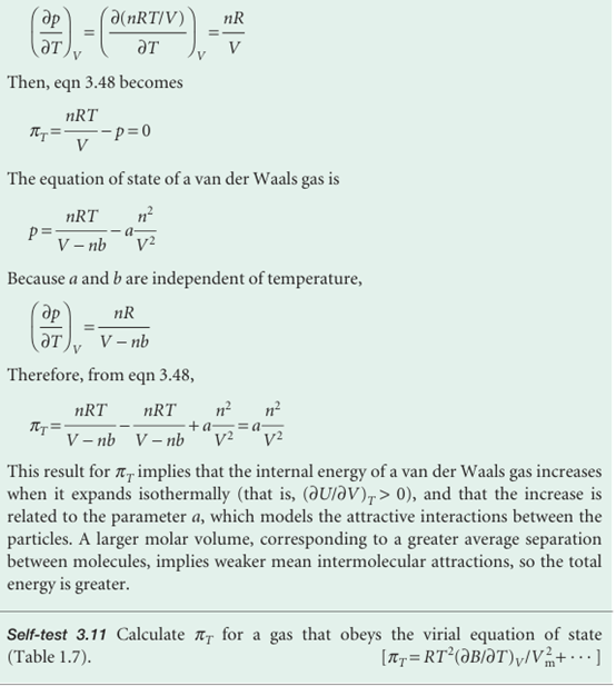 The quantity πT=(∂U/∂V) T, which represents how the internal energy changes as the volume of a system is changed isothermally, played a central role in the manipulation of the First Law, and in Further information 2.2we used the relation