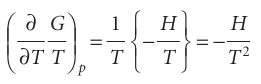 As we remarked in the introduction, because the equilibrium composition of a system depends on the Gibbs energy, to discuss the response of the composition to tempera ture we need to know how Gvaries with temperature. The first relation in eqn 3.50, (∂G/∂T) p=−S, is our starting point for this discussion. Although it expresses the variation of Gin terms of the entropy, we can express it in terms of the enthalpy by using the definition of G to write S=(H−G)/T.