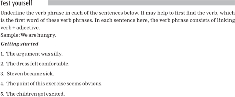The following verb phrases with linking verbs are different in structure as well as in meaning from verb phrases with action verbs: