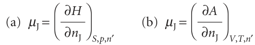 Thus we see that the µJ shows how all the extensive thermodynamic properties U, H, A, and G depend on the composition. This is why the chemical potential is so central to chemistry.
