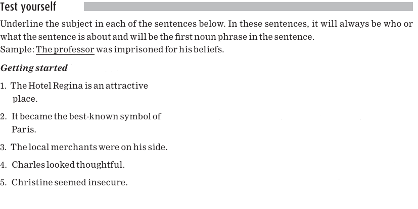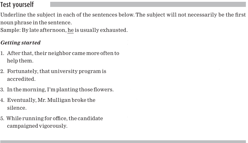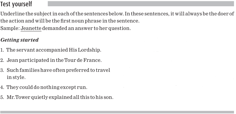 The subject is underlined in the following sentences: