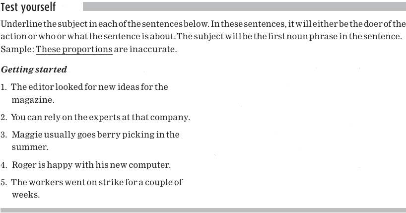 We can identify the subject of a sentence with an action verb by answering the question: ‘‘Who is doing the action?’’ For example, in the sentence Confucius spoke many words of wisdom, the action is speaking. Who is, or was, doing the speaking? Confucius. Confucius is therefore the subject of the sentence. The subjects are underlined in the following examples: