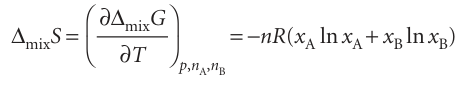 Because (∂G/∂T) p,n =−S, it follows immediately from eqn 5.18 that, for a mixture of perfect gases initially at the same pressure, the entropy of mixing, ∆mixS, is