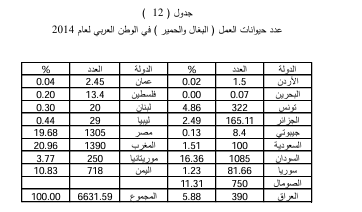 التوزيع الجغرافي لحيوانات العمل في الوطن العربي