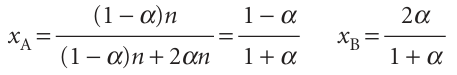 To treat the effect of compression quantitatively, we suppose that there is an amount of A present initially (and no B). At equilibrium the amount of A is (1 −α)n and the amount of B is 2αn, where αis the extent of dissociation of A into 2B. It follows that the mole fractions present at equilibrium are