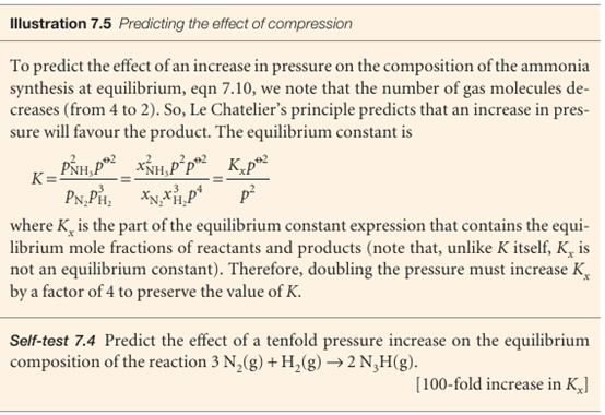 This formula shows that, even though Kis independent of pressure, the amounts of A and B do depend on pressure (Fig. 7.7). It also shows that as p is increased, α decreases, in accord with Le Chatelier’s principle.