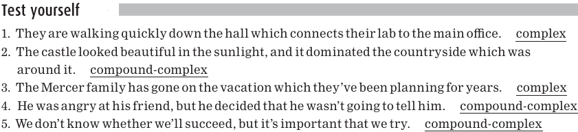 You won’t be surprised to learn that sentences such as sentence 3, which are both compound (two clauses connected with but) and complex (two clauses connected with that), are called compound-complex sentences. These are sentences that contain at least two main clauses, and at least one of the main clauses has at least one dependent clause.