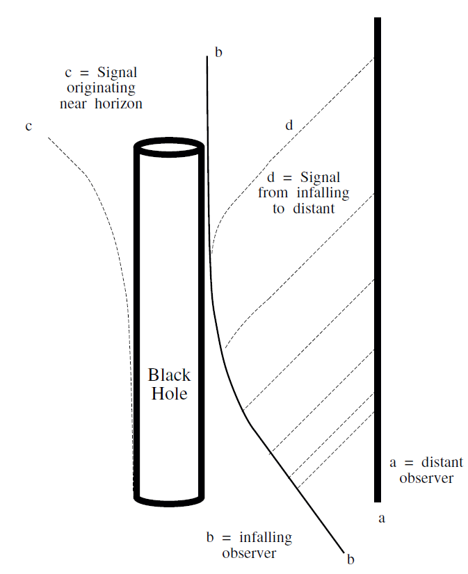 Fig. 1.1. In falling observer sending signals to distant Schwarzschild observer.