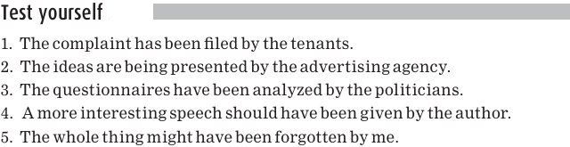 Fourth, passive sentences have a form of be (am, is, are, was, were, be, being) before the verb: