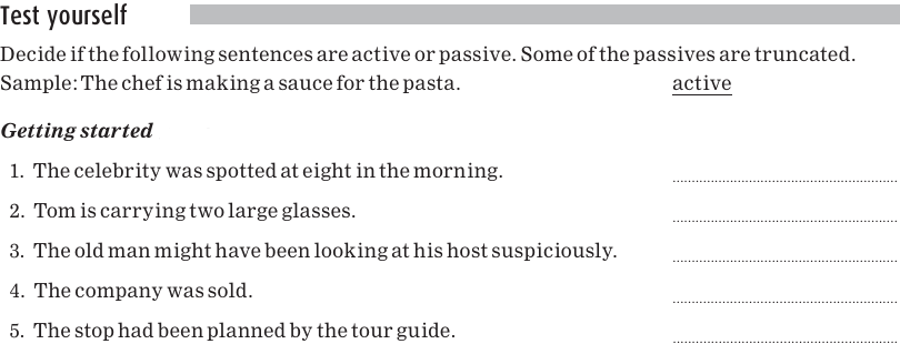 Use the following exercises to help you focus in on the differences between active and passive sentences.