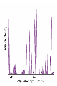 Fig. 8.10 A region of the spectrum of radiation emitted by excited iron atoms consists of radiation at a series of discrete wavelengths (or frequencies).