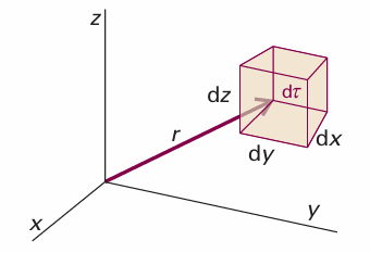 Fig. 8.20The Born interpretation of the wavefunction in three-dimensional space implies that the probability of finding the particle in the volume element dτ=dxdydz at some location ris proportional to the product of dτ and the value of |ψ|2at that location.