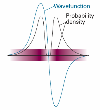 Fig. 8.21The sign of a wavefunction has no direct physical significance: the positive and negative regions of this wavefunction both correspond to the same probability distribution (as given by the square modulus of ψ and depicted by the density of shading).