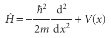 The quantity @ is an operator, something that carries out a mathematical operation on the function ψ. In this case, the operation is to take the second derivative of ψ and (after multiplication by −$2/2m) to add the result to the outcome of multiplying ψ by V. The operator @ plays a special role in quantum mechanics, and is called the hamiltonian operator after the nineteenth century mathematician William Hamilton, who developed a form of classical mechanics that, it subsequently turned out, is well suited to the formulation of quantum mechanics. The hamiltonian operator is the operator corresponding to the total energy of the system, the sum of the kinetic and potential energies. Consequently, we can infer—as we anticipated in Section 8.3— that the first term in eqn 8.24b (the term proportional to the second derivative) must be the operator for the kinetic energy. When the Schrödinger equation is written as in eqn 8.24a, it is seen to be an eigenvalue equation, an equation of the form