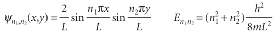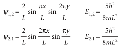 An interesting feature of the solutions for a particle in a two-dimensional box is obtained when the plane surface is square, with L1=L2=L. Then eqn 9.12a becomes