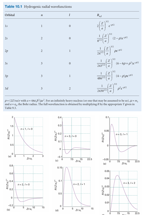 with n = 1, 2, . . . Likewise, the radial wavefunctions depend on the values of both n and l (but not on ml), and all of them have the form