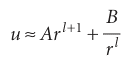 Because R = u/r, and R cannot be infinite at r = 0, we must set B = 0, and hence obtain R ≈Arl. Far from the nucleus, when r is very large, we can ignore all terms in 1/r and eqn 10.9 becomes