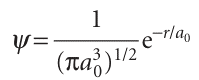 This wavefunction is independent of angle and has the same value at all points of constant radius; that is, the 1s orbital is spherically symmetrical. The wavefunction decays exponentially from a maximum value of 1/ (πa0 3)1/2 at the nucleus (at r = 0). It follows that the most probable point at which the electron will be found is at the nucleus itself.