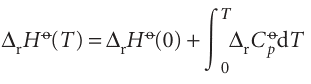 The molar constant-pressure heat capacity of each species in the reaction is 5/2R, so ∆rCop =+5/2R. The integral in this expression therefore evaluates to +5/2RT. The reaction enthalpy at T = 0 is the same as the (molar) ionization energy, I. Equation 10.33 then follows. The same expression applies to each successive ionization step, so the overall ionization enthalpy for the formation of M2+ is