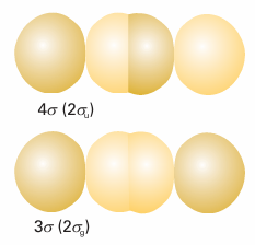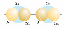 Fig. 11.25 According to molecular orbital theory, σ orbitals are built from all orbitals that have the appropriate symmetry. In homonuclear diatomic molecules of Period 2, that means that two 2s and two 2pz orbitals should be used. From these four orbitals, four molecular orbitals can be built.