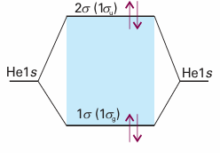 Fig. 11.24 The ground electronic configuration of the hypothetical four electron molecule He2 has two bonding electrons and two antibonding electrons. It has a higher energy than the separated atoms, and so is unstable.