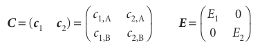In preparation for making Hückel theory more sophisticated and readily applicable to bigger molecules, we need to reformulate it in terms of matrices and vectors (see Appendix 2). We have seen that the secular equations that we have to solve for a two-atom system have the form
