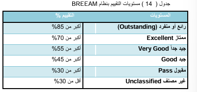 جدول ( 14 ) مستويات التقييم بنظام BREEAM