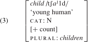 A lexical entry for the English noun child might look something like (3).