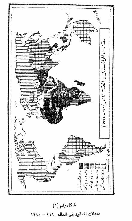 أما أدنى معدلات المواليد فقد سجلت كلها في الدول الأوربية ، بالإضافة إلى اليابان ، وقد سجلت أقل المعدلات في كل من اليونان وإيطاليا وهي 10 في الألف ، وسجل معدل 12 في الأف فى كل من النمسا والمجر وبلجيكا والدنمارك ويمكن تقسيم العالم إلي خمسة أنماط من حيث معدلات المواليد خلال الفترة 1990 - 1995 ، وهى تتضح فى شكل رقم (1) كما توجد بيانات هذه الدول في الملحق الإحصائي ، وهذه الأنماط هي كما يلى :-