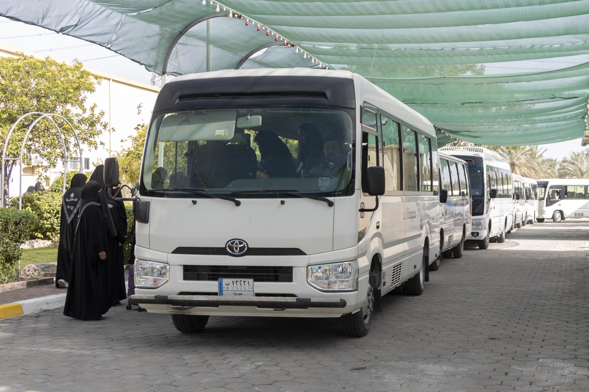 وصول المشارِكات في حفل تخرج طالبات الجامعات العراقية العاشر إلى مجمّع الشيخ الكليني (قدّس سرّه)