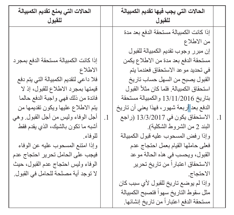 حالات تقديم الكمبيالة للقبول وحالات عدم تقديمها
