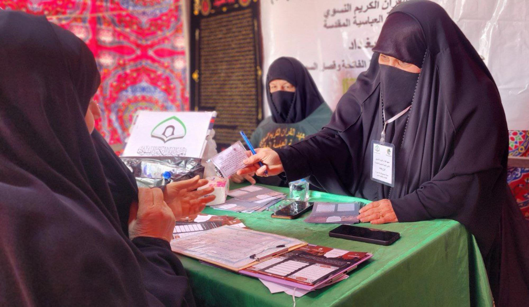 على طريق الزائرين.. معهد القرآن الكريم النسوي يقدم خدماته التبليغية لزائرات مدينة الكاظمية