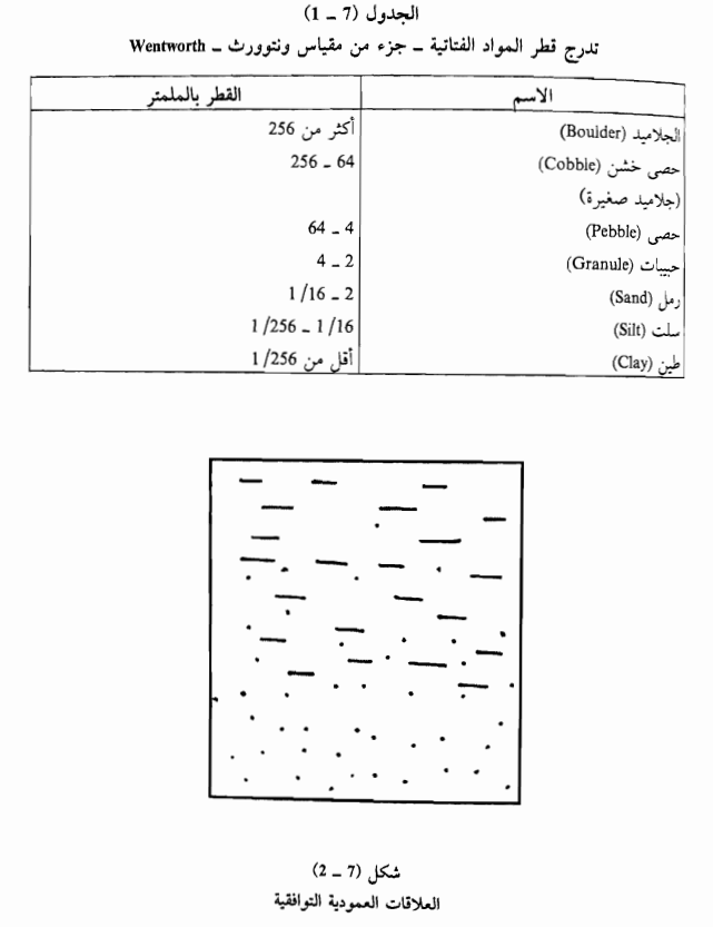 إن التغير التدريجي لنوع واحد من الصخور يتم حين تغير حبيبات الرمل في حجمها من قطع كبيرة في الأسفل إلى قطع أصغر حجماً كلما اتجهنا نحو الأعلى العمود الطباقي وهذا النوع من التغير قد يبدأ بقطع حجمها بحجم الرمل حسب مقياس ونتوورث (Wentworth) وهو ما بين 2 - (1/16) ملم ثم تصغر في الحجم إلى السلت حيث حجم القطع يتراوح ما بين (1/ 16 ـ 256/1) ثم ينتهي حبيات الطين (Clay size أقل من (1/ 256 ملم ومن المناسب تذكير الطالب بأن عبارة الطين (Clay) ذات مفهومين فهي قد تشير إلى ترسبات متكونة من معادن طينية كالإليت (Illite) والمنتموريلونايت والكلورايت وهي معادن ذات تركيب خاص وصفات خاصة كما ترد عبارة الطين للدلالة على حجم حبيبات المواد الفتاتية حسب تقسيم ونتوورث المعروف التي تشمل أية مادة فتاتية (Clastic) (طينية أو رملية أو كلسية) ذات حجم ، أقل من 250/1 ملم.