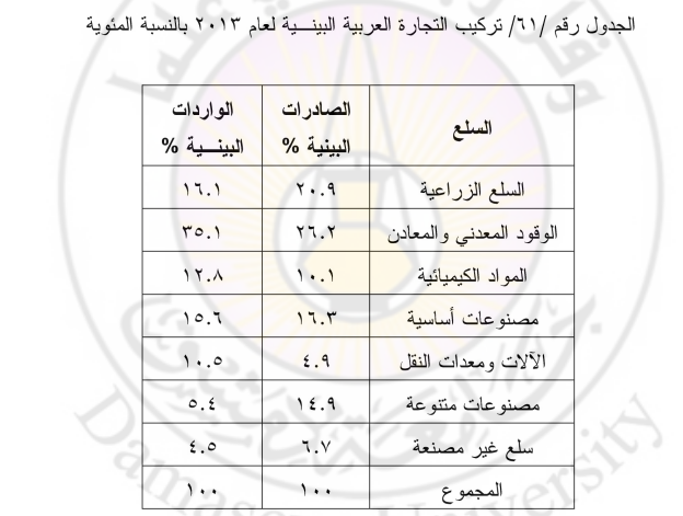 التركيب السلعي للتجارة العربية البينية