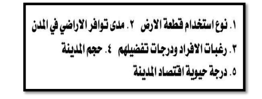 من غير الممكن وضع نظرية تامة عن اقيام الاراض في المدن لعدة اسباب منها سعر الارض وموقعها الجغرافي ونوع الوظائف التي تتوزع حولها وطبيعة الشوارع التي تطل عليه قطعة الارض وغيرها من العوامل الاخرى ، ففي الدول التي تتبع النظام الرأسمالي يتم تخصيص قطعة الارض للذي يدفع الاعلى سعرا او الاعلى ايجارا لها وبالتالي فان الاسعار تكون على اشدها في مركز المدينة او عند تقاطع الشوارع الرئيسة ، في حين تنخفض بشكل تدريجي كلما ابتعدنا عن مركز المدينة او الشوارع الرئيسة على اعتبار ان توزيع الوحدات السكنية تفضل المناطق البعيدة عن حالة الازدحام المروري والضوضاء الموجود في مركز المدينة ، اما في البلدان النامية فان جزء من الاراضي هي ملكية حكومية وبالتالي فان الجهات الحكومية المالكة للأرض تحدد نوع الاستعمال من الارض المخصصة ونمطه ، والجزء الاخر ذات ملكية الارض خاصة فان ذلك سيؤدي الى استثمارها بالشكل الامثل ، والجدير ذكره فان البلدان النامية غالباً ما تتبنى سياسة توزيع القطع السكنية في اماكن معينة من مراكز المدن ومن امثلتها مدن العراق وبالتالي فان الوحدات السكنية المواجهة للشوارع الرئيسة تستغل كعمارات سكنية او مراكز تسويقية وبالتالي يفسر ارتفاع اسعار الايجارات فيها ، على الرغم من تخصص الارض للاستعمال السكني وعموما يتحدد سعر الارض في المدن على عدة عوامل وهي :
