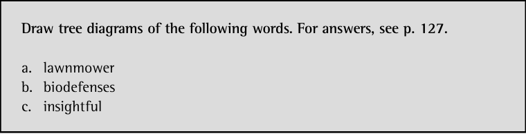 The fact that speakers of many languages can add phonological material to either end of a word sometimes leads to complex structures. Take the two English words in (24):