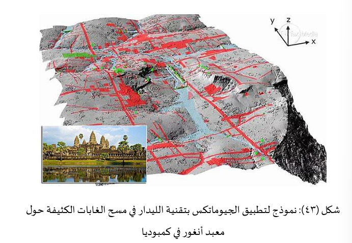 وجد علماء الآثار في تقنيات الاستشعار عن بعد والـ GIS حليفًا قويًا لاكتشاف المواقع الأثرية وإدارتها دراسة حالة في كمبوديا، استخدم فريق دولي تقنية LiDAR المحمولة جوًا لمسح الغابات الكثيفة حول مجمع معابد أنغكور وات الشهير كشف التحليل عن شبكة مدن ومعابد مخفية تحت الأشجار لم يكن بالإمكان رؤيتها بالوسائل التقليدية، مما قلب فهم الباحثين عن حضارة الخمير القديمة أيضًا استخدمت الأقمار الصناعية رادار الاختراق الأرضي لكشف معالم مطمورة من حضارات المايا في أمريكا الوسطى. أما في جانب الإدارة، فإن مواقع التراث العالمي مثل مواقع البتراء في الأردن أو أهرامات مصر تُدار باستخدام GIS لتتبع حالة المعالم، ومراقبة التأثيرات البيئية والبشرية كالتعرية أو الضغط السياحي، ووضع خطط للحفاظ عليها وهكذا أصبح للجيوماتيكس دور في حفظ التراث الثقافي من خلال إعطاء صورة شاملة للموقع الأثري وربطه بمحيطه البيئي والجغرافي.