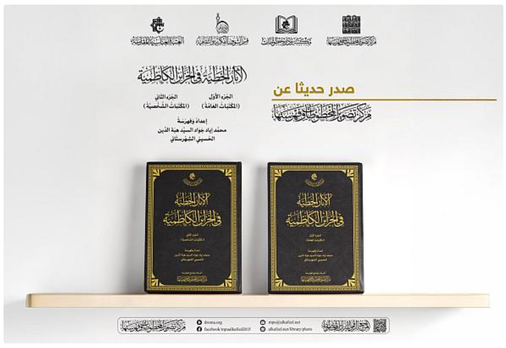 أصدر قسم الشؤون الفكرية والثقافية في العتبة العباسية المقدسة كتابًا جديدًا بعنوان: (الآثار الخطية في الخزائن الكاظمية). وتولى إصدار الكتاب مركز تصوير المخطوطات وفهرستها التابع لمكتبة ودار المخطوطات العتبة المقدسة في القسم، وجاء في جزأين، ليوثق إرثًا علميًّا لمجموعة من خزائن المكتبات العامة والخاصة في مدينة الكاظمية، وهو من إعداد السيد محمد إياد جواد الشهرستاني وفهرسته. وقال معاون مدير المركز، السيد حيدر الكناني: إنّ "هذا الإصدار يمثل إضافة نوعية للمكتبة التراثية، لما يضمه من مادة علمية ثرية تعكس تنوع النتاج المعرفي في الخزائن الكاظمية". وأضاف أنّ "الجزء الأول من الكتاب خُصص للمكتبات العامة، فيما تناول الجزء الثاني المكتبات الشخصية"، لافتًا إلى أنّ "إجمالي ما فُهرس في الجزأين بلغ 1172 عنوانًا، توزعت على 696 مجلدًا، وبثلاث لغات: العربية والفارسية والتركية، وشملت موضوعات متعددة في العلوم الإسلامية والإنسانية".