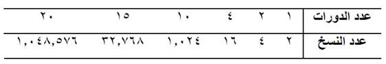 واذا اخذنا في الاعتبار عدد دورات PCR وعدد النسخ الناشئة، يمكن ايجازها في الجدول الاتي