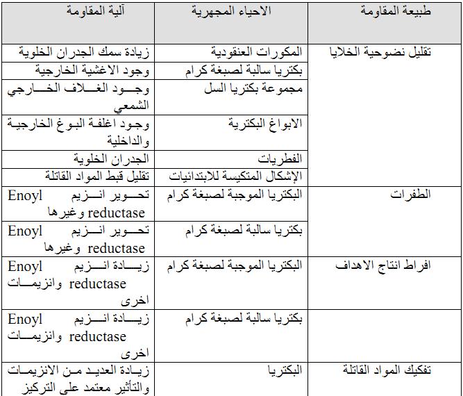 جدول 1 : الآليات العامة لمقاومة القاتلات الحيوية