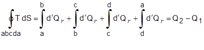 تُمثِّل المساحة المحصورة تحت المنحنى T-S، الممثِّل لعمليَّة ما بيْنَ حالتيْن i و f، السريان الحراري في هذه العمليَّة أي