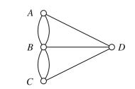 Vertices A,B,C and D represent the parts A,B,C and D of Königsberg, and each bridge is represented by an edge. The graph is shown in Fig. 6.3. In terms of this model, the original problem becomes: can a walk be found that contains every edge of the graph precisely once?