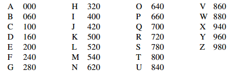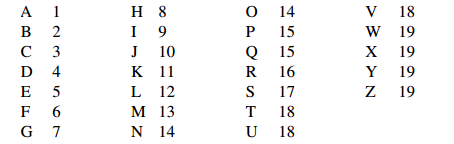and another number (from 1 to 19) is added for your middle initial, if any (1 for A, 6 for F, 18 for T, U or V, and so on). A list of name encodings is shown in the table below. Carl is 120 and D is 4, so Mr Springer’s 5th, 6th and 7th digits are 124.