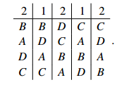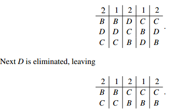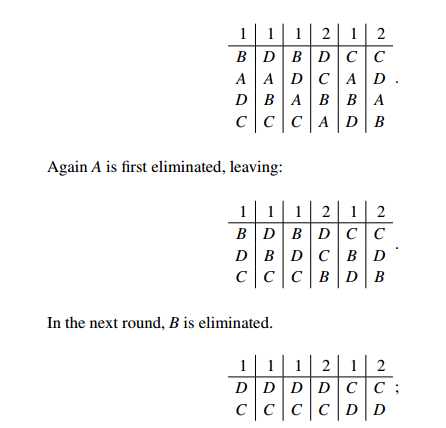 Sample Problem 1.2 An election with four candidates and seven voters is to be decided by the Hare system. The preference profile is