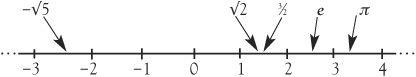 , e and a which are not fractions. These are the irrational numbers – they ‘fill in the gaps’ to give us the real number line R.