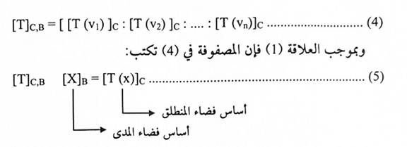 سنرمز لهذه المصفوفة بالرمز C, B[T]. لذا فإن العلاقة (3) تكتب بالشكل: