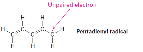 Draw three resonance forms for the pentadienyl radical, where a radical is a substance that contains a single, unpaired electron in one of its orbitals, denoted by a dot ((..