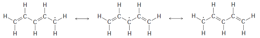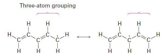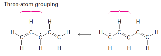 The unpaired electron is on a carbon atom next to a C5C bond, giving a typical three-atom grouping that has two resonance forms.