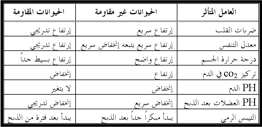 شكل يوضح تأثير درجة الحرارة على اللحم بعد الذبح